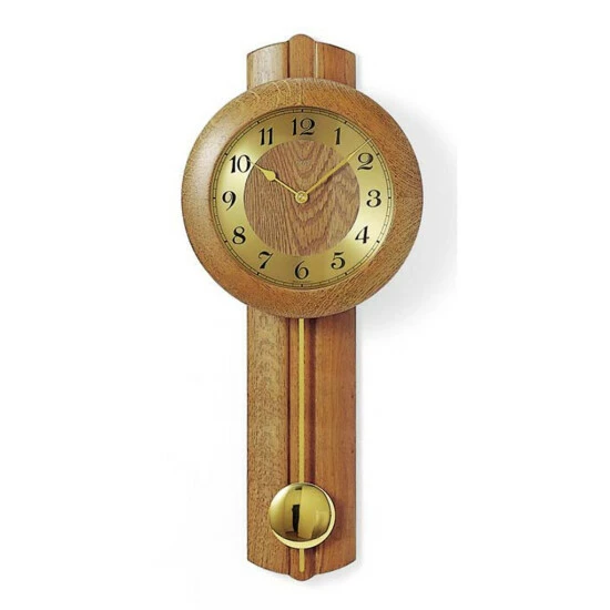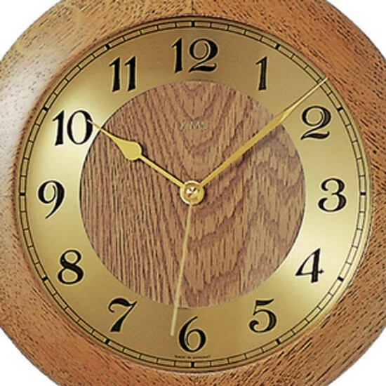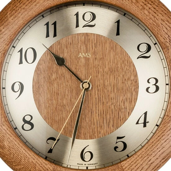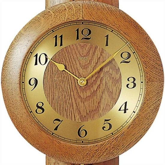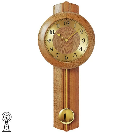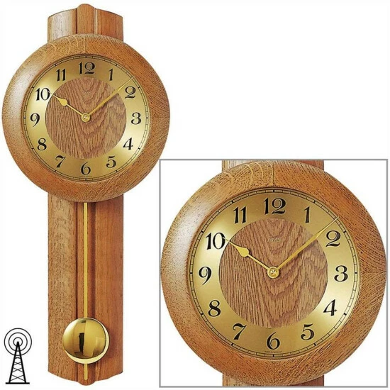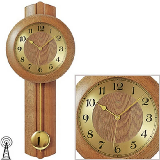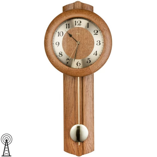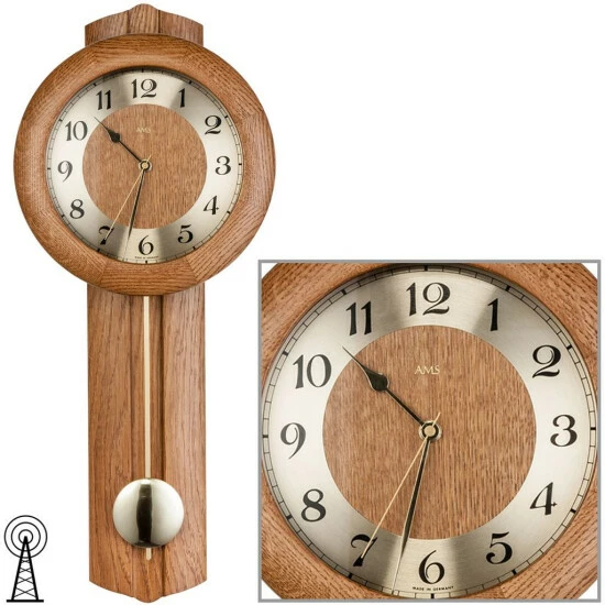 AMS 5165/4 Wanduhr Funk Funkwanduhr mit Pendel Holz Eiche massiv Pendeluhr
