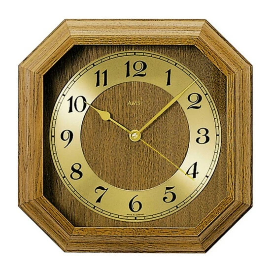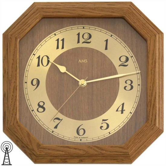AMS 5864/4 Wanduhr Funk Funkwanduhr analog eckig achteckig Holz Eiche mit Glas