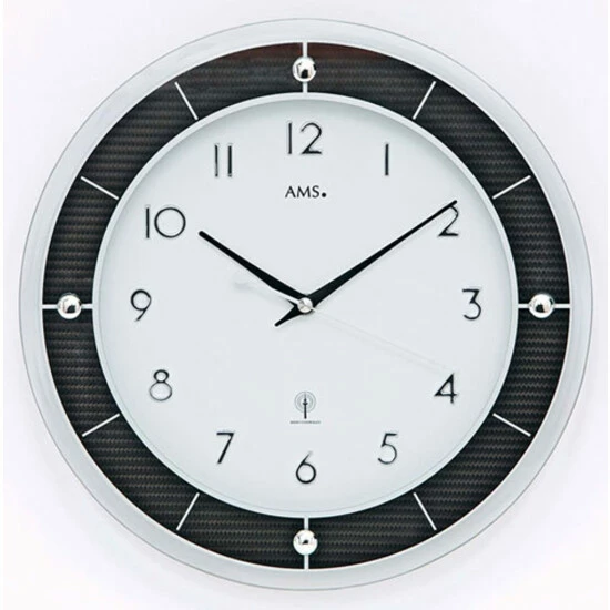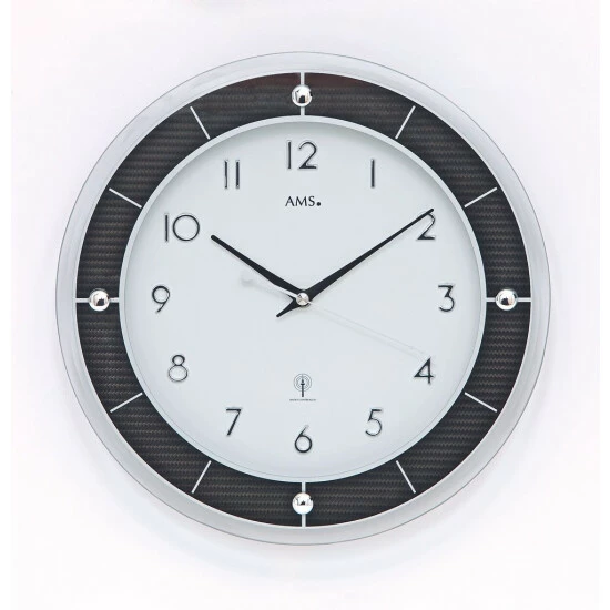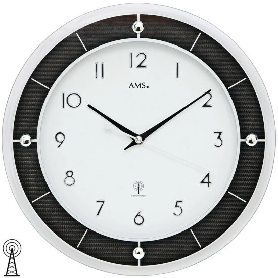 AMS 5854 Wanduhr Funk Funkwanduhr analog rund mit Glas und Carbon-Applikationen