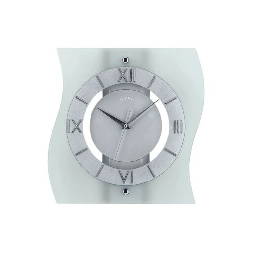 AMS 5909 Wanduhr Funk Funkwanduhr analog silbern modern geschwungen mit Glas