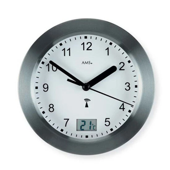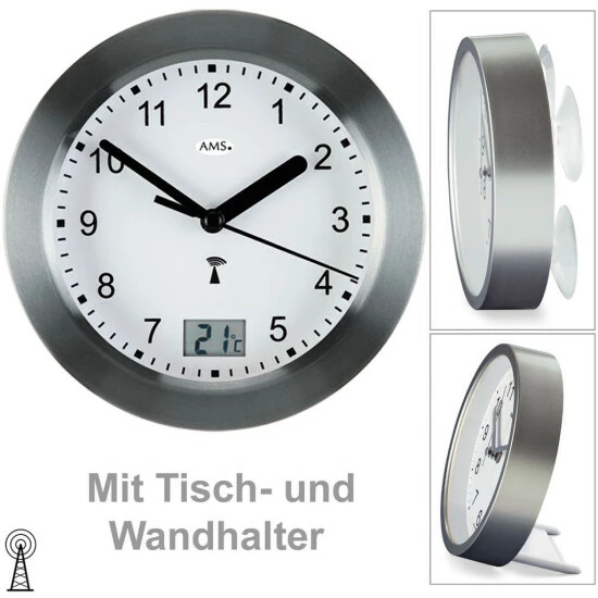 AMS 5925 Wanduhr Baduhr Badezimmeruhr Funk anthrazit wasserdicht mit Thermometer