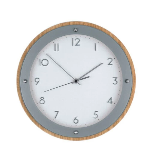 Funk-Wanduhr, furniertes Holzgehäuse, bedrucktes Mineralglas, aufgelegte Zahlen, Durchmesser ca. 29 cm, Tiefe ca. 5 cm