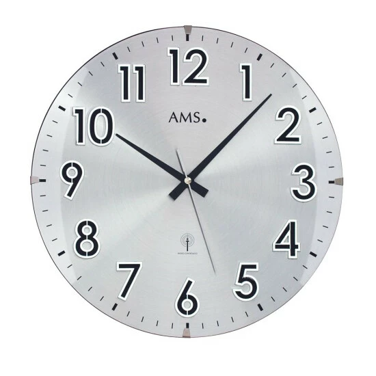 AMS 5973 Wanduhr Funk Funkwanduhr analog rund mit Metall-Zifferblatt und Glas