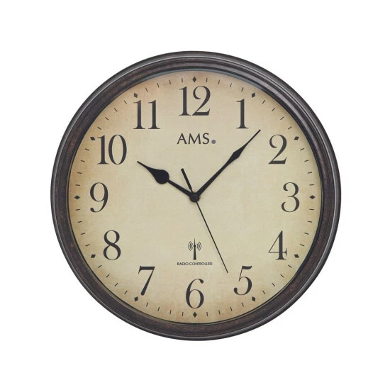 AMS 5962 Wanduhr Funk Funkwanduhr analog rund antik vintage retro mit Glas