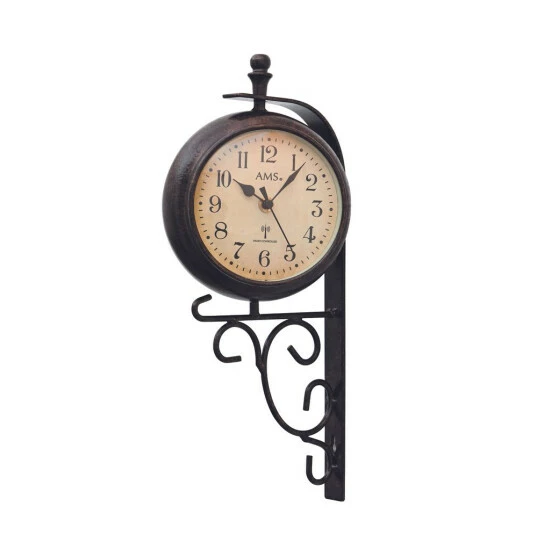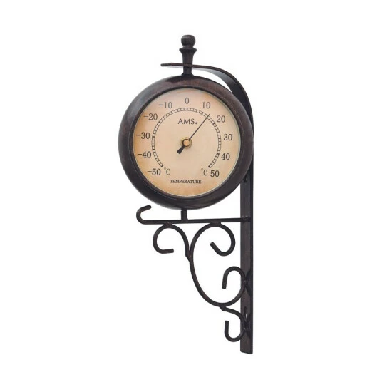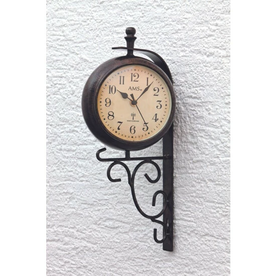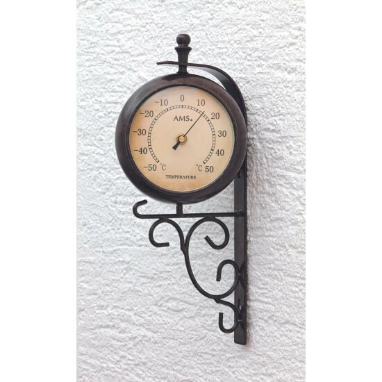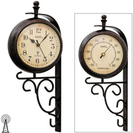AMS 5961 Wanduhr Funk Funkwanduhr mit Thermometer antik vintage retro wetterfest