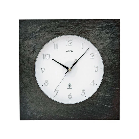 Schlussverkauf 🌟 AMS Funk-Wanduhr Naturschiefer 5546, Mit Weißem Zifferblatt, Arabischen Zahlen Und Mineralglas 🤩
