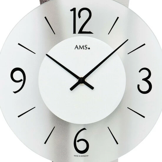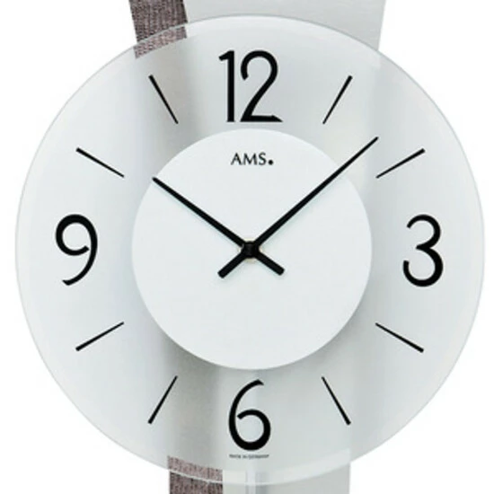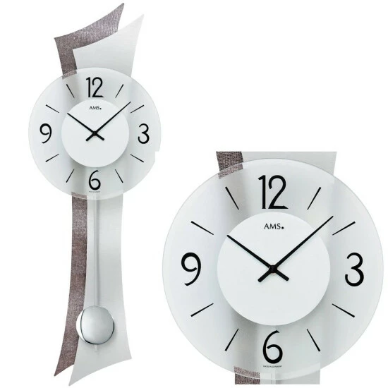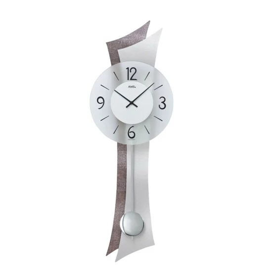 AMS 7426 Wanduhr Quarz mit Pendel Pendeluhr mit Aluminium und Kunstleder