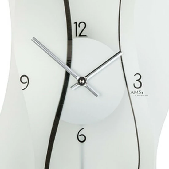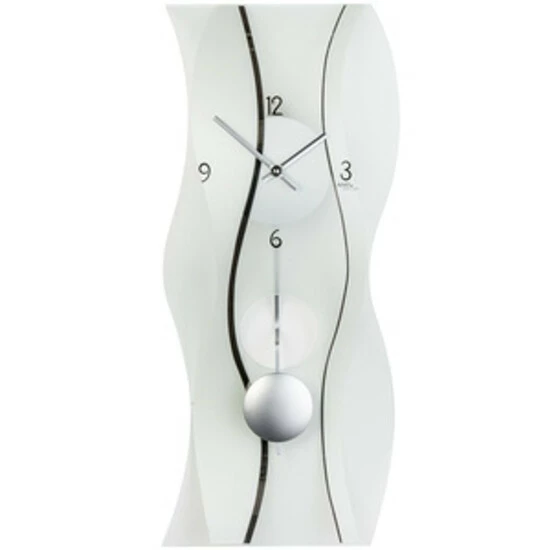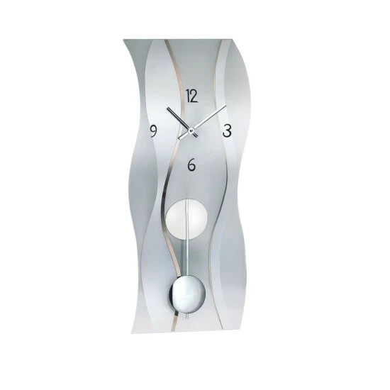 AMS 7246 Wanduhr Quarz mit Pendel modern geschwungen Pendeluhr mit Glas