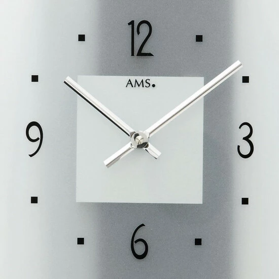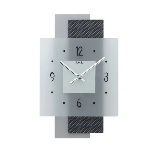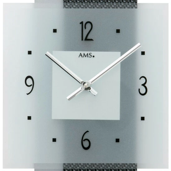 AMS 9243 Wanduhr Quarz analog silbern modern mit Carbon Applikation und Glas