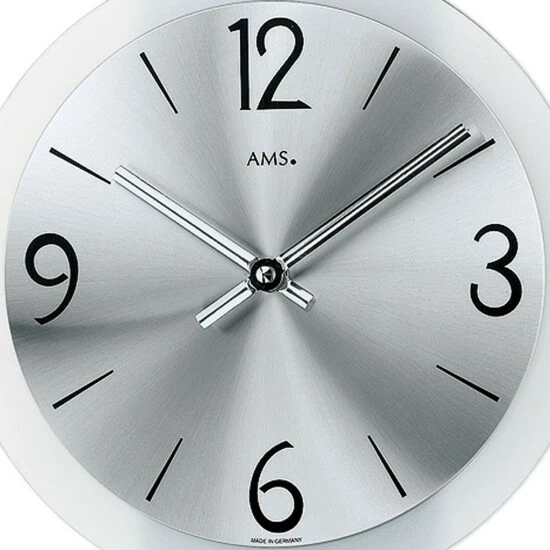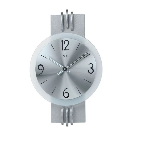 AMS 9229 Wanduhr Quarz analog silbern modern mit Aluminium und Glas