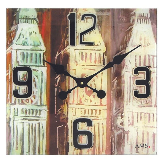 AMS 9489 Wanduhr Quarz analog eckig vintage antik retro