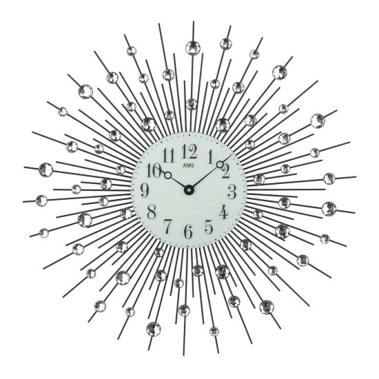 AMS 9380 Wanduhr Quarz analog schwarz Metall mit Glassteinen