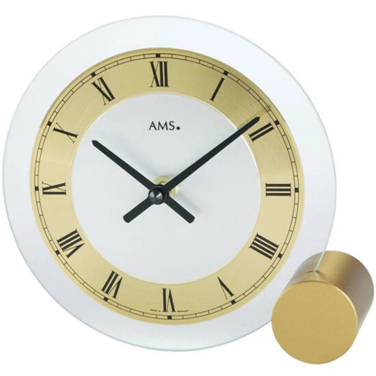 AMS 168 Tischuhr Quarz golden rund modern Metall mit Glas römische Ziffern