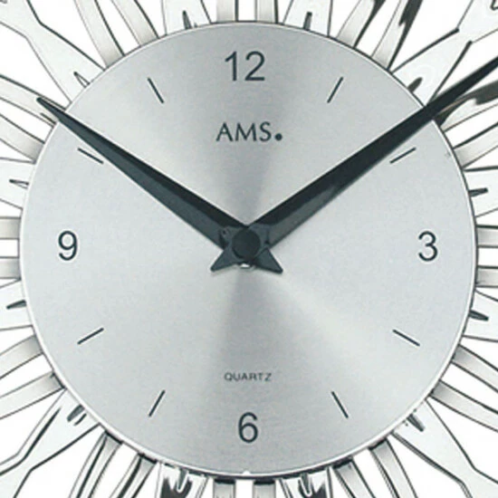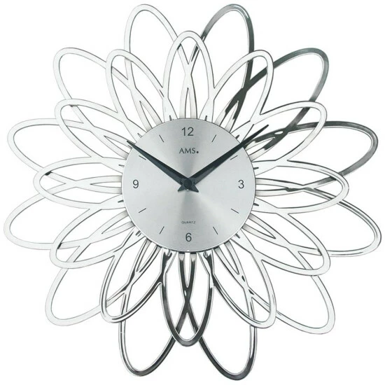 AMS 9362 Wanduhr Quarz analog silbern modern florales Design